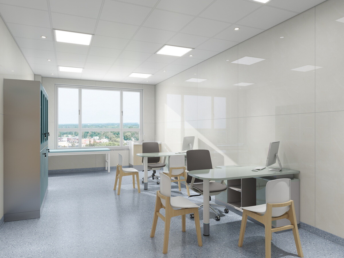 医生办公桌是咨询和记录工作的空间。它通常包括医疗诊断工具存放、医用电脑主机的配置、打印机、医用观片灯的配置等,患者档案的存储空间,以确保为患者护理提供一个功能齐全、井然有序的环境。