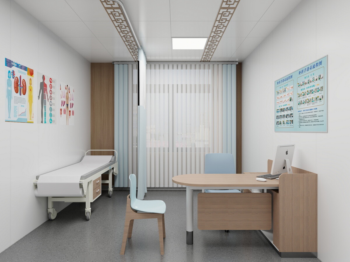 医生办公桌是咨询和记录工作的空间。它通常包括医疗诊断工具存放、医用电脑主机的配置、打印机、医用观片灯的配置等,患者档案的存储空间,以确保为患者护理提供一个功能齐全、井然有序的环境。