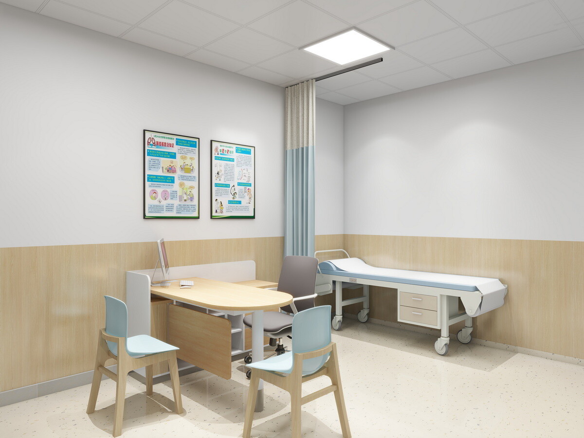 医生办公桌是咨询和记录工作的空间。它通常包括医疗诊断工具存放、医用电脑主机的配置、打印机、医用观片灯的配置等,患者档案的存储空间,以确保为患者护理提供一个功能齐全、井然有序的环境。