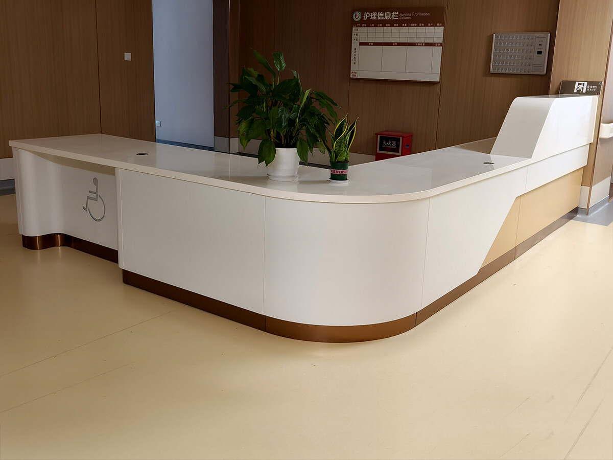 医用人造石材料经过抛光研磨后,具有抗菌、防霉、防火等特点,适用于医院环境,耐久使用性,特别适合医疗环境下使用。