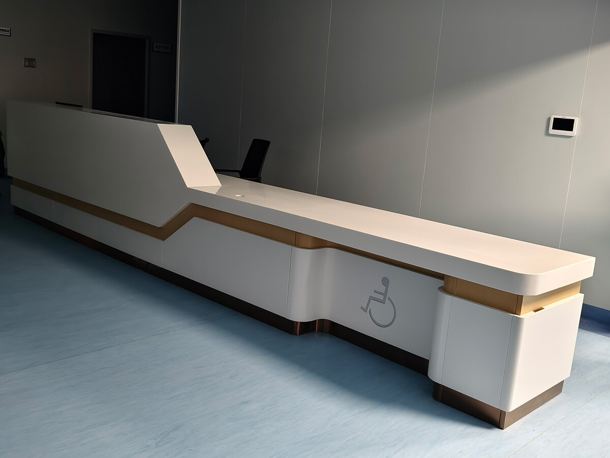 医用人造石材料经过抛光研磨后,具有抗菌、防霉、防火等特点,适用于医院环境,耐久使用性,特别适合医疗环境下使用。