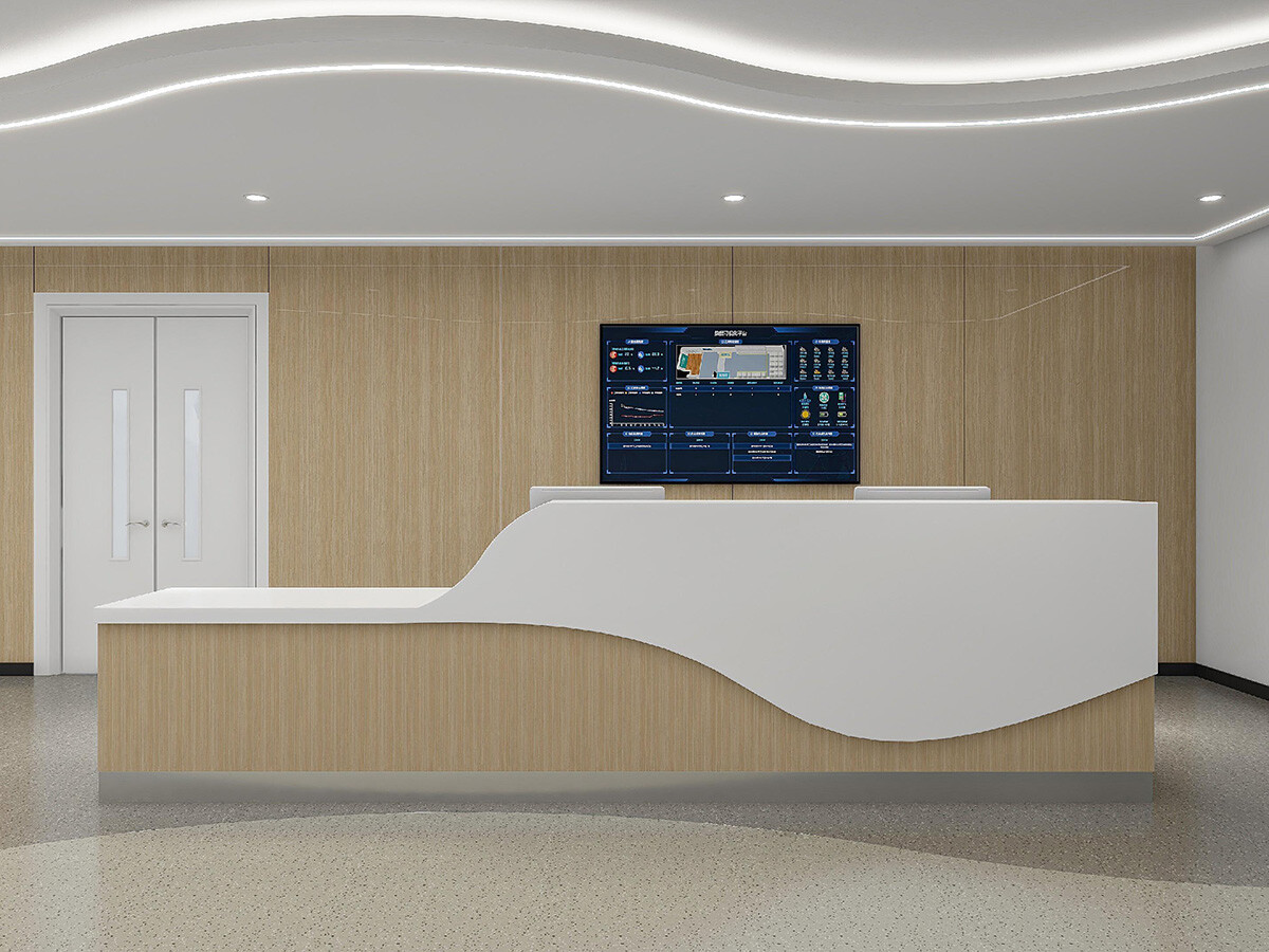 分诊台主体采用铝合金框架与防火板饰面,台面嵌入22寸高清导诊屏和号源状态指示灯。结构包含电子血压计集成模块、候诊椅充电插座及轮椅存放区。设计高度75cm,配备扩音系统与多语种标识,支持高峰时段患者分流。材质通过ASTM抗细菌附着测试,每日可完成300+人次接待。可选配空气净化模块,降低呼吸道疾病传播风险